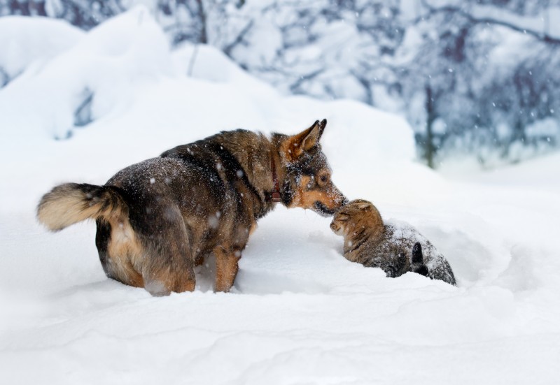 Was unbedingt vermieden werden sollte ist das Fressen von Schnee. Tiere lieben es, aber es ist eine der Hauptursachen für Erkrankungen im Winter. Die häufigsten Reaktionen auf große Mengen Schnee sind Magen- und Darmentzündungen. Apropos Erkrankungen: Hunde und Katzen können sich während der Grippezeit beim Menschen anstecken. Während einer Grippe gilt daher absolutes Kuschelverbot!
